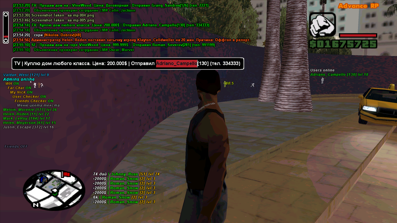 Админ чекер - известный клео скрпит который позволяет проверять администрацию популярных рп серверов на онлайн. В основном используется читерами и не честными игроками, чтоб во время увидеть админа и если что покинуть сервер. В скрипте есть поддержка сервера SAMP RP, Advance и Diamond. Кроме этого в настройках скрипта можно настроить чекер друзей, чтобы знать кто из ваших друзей сейчас на сервере.